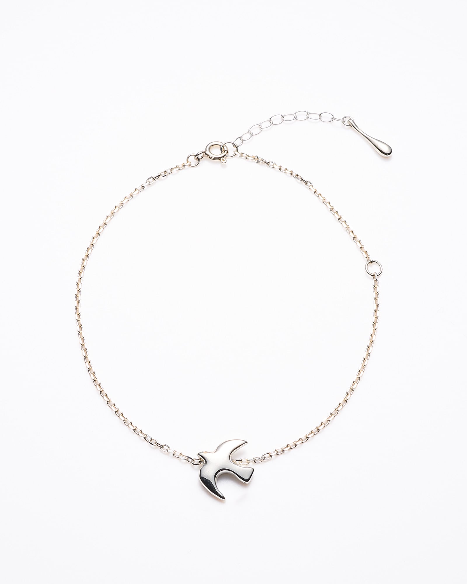 リュニックエ モアのディレクターが敬愛する祖母の愛称でもあった“ハト(鳩)さん”を着想に、平和の象徴でもある"鳩”を特別に製作。途中の丸カンで留めるとブレスレットとしても着用できる2WAYタイプ。