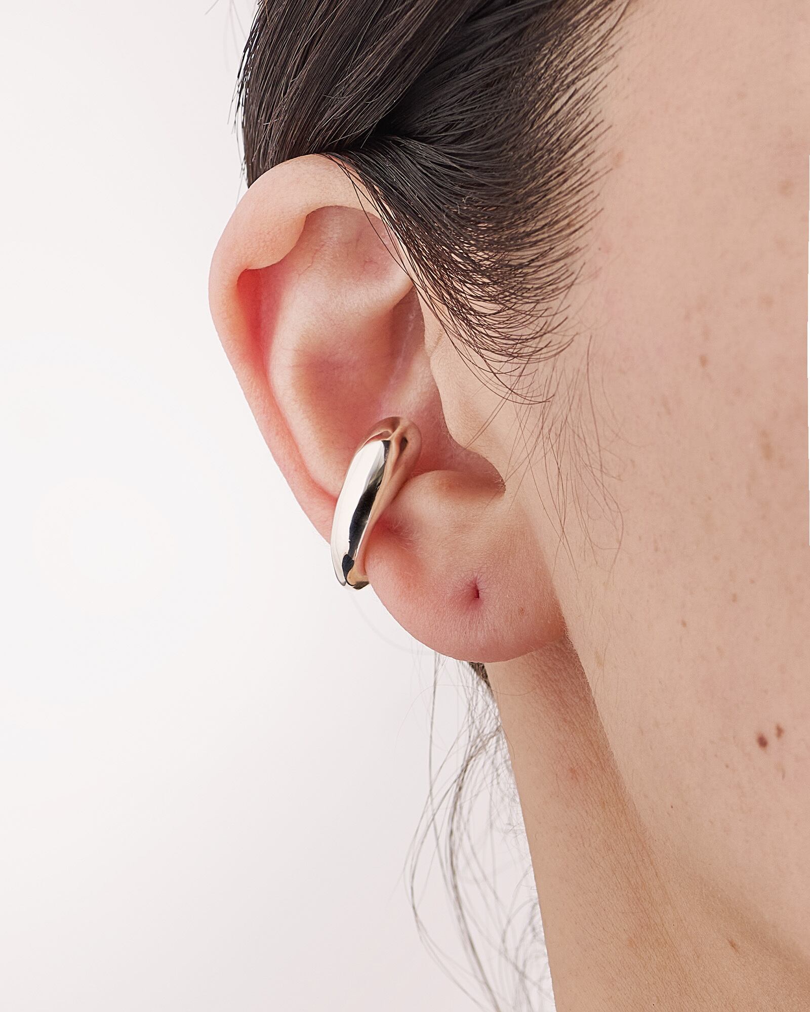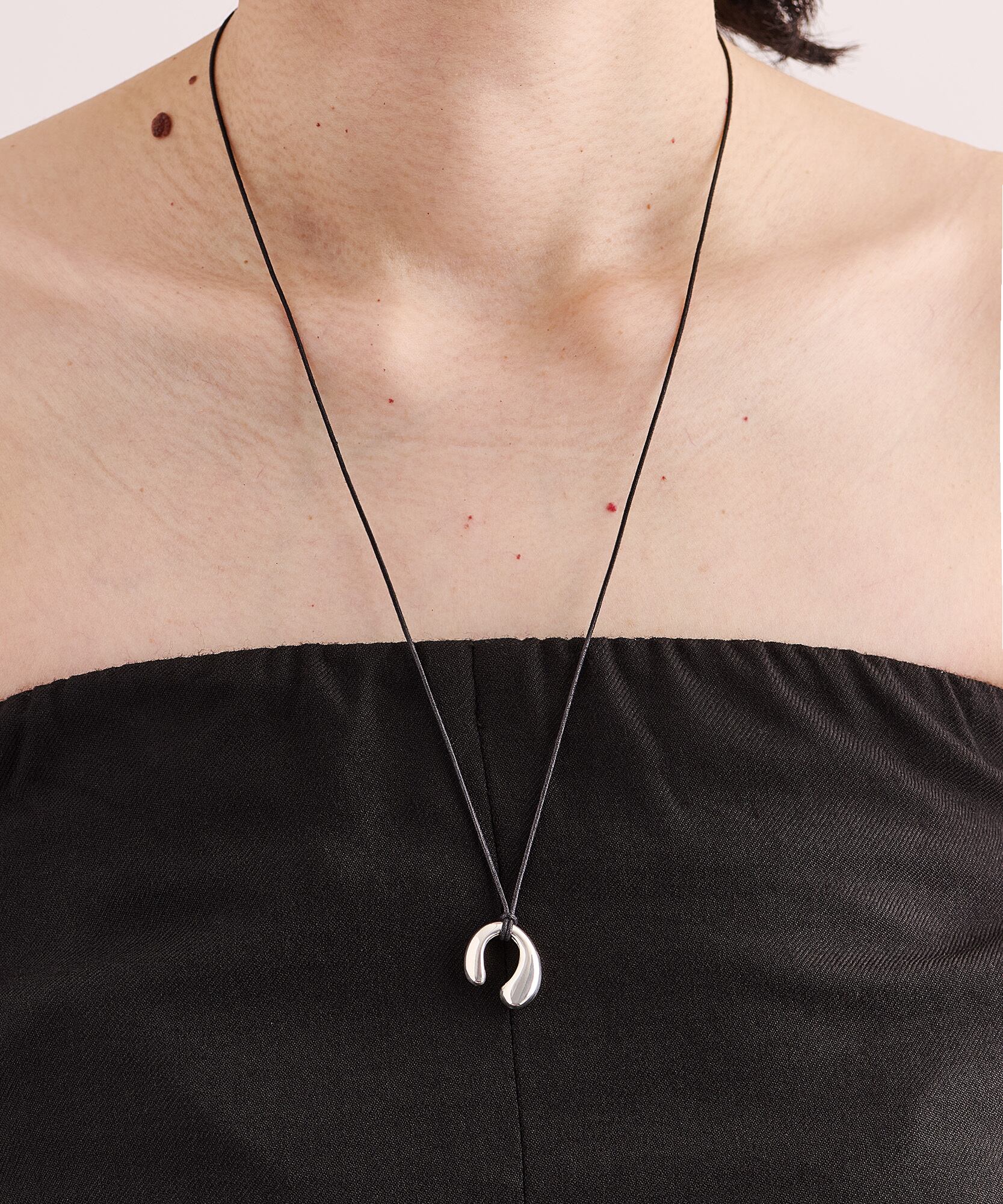 自然がつくるやわらかな曲線を生かし、有機的な丸みのあるデザインがモチーフのネックレス。こちらのモチーフは、紐から外すとイヤカフとしても使用できます。