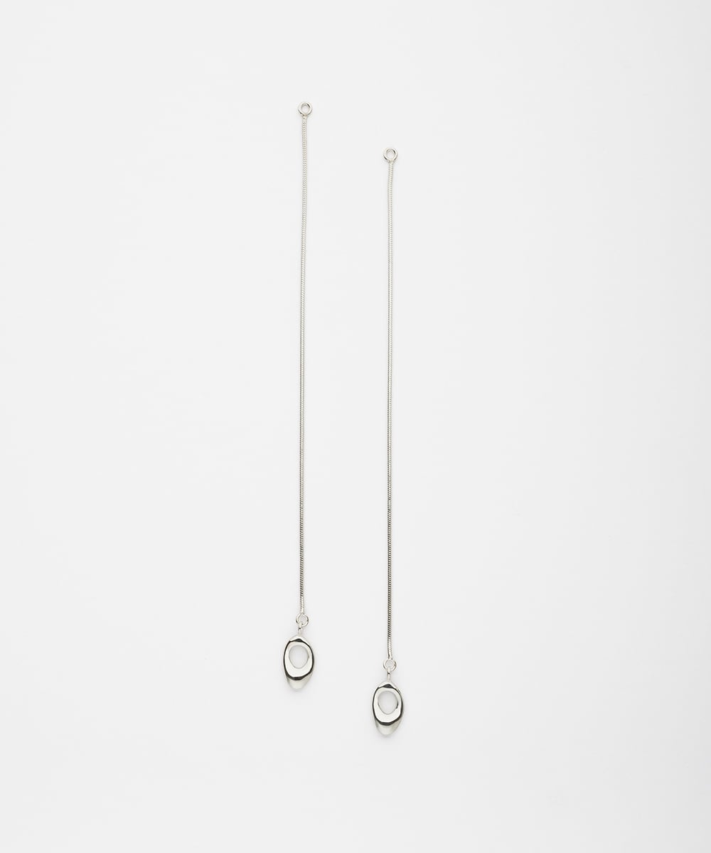 (着用方法)スタッズピアスを先に着けて、耳たぶの後ろ側のポスト部分にチェーンピアスの丸カンを通して、キャッチで止めてください。