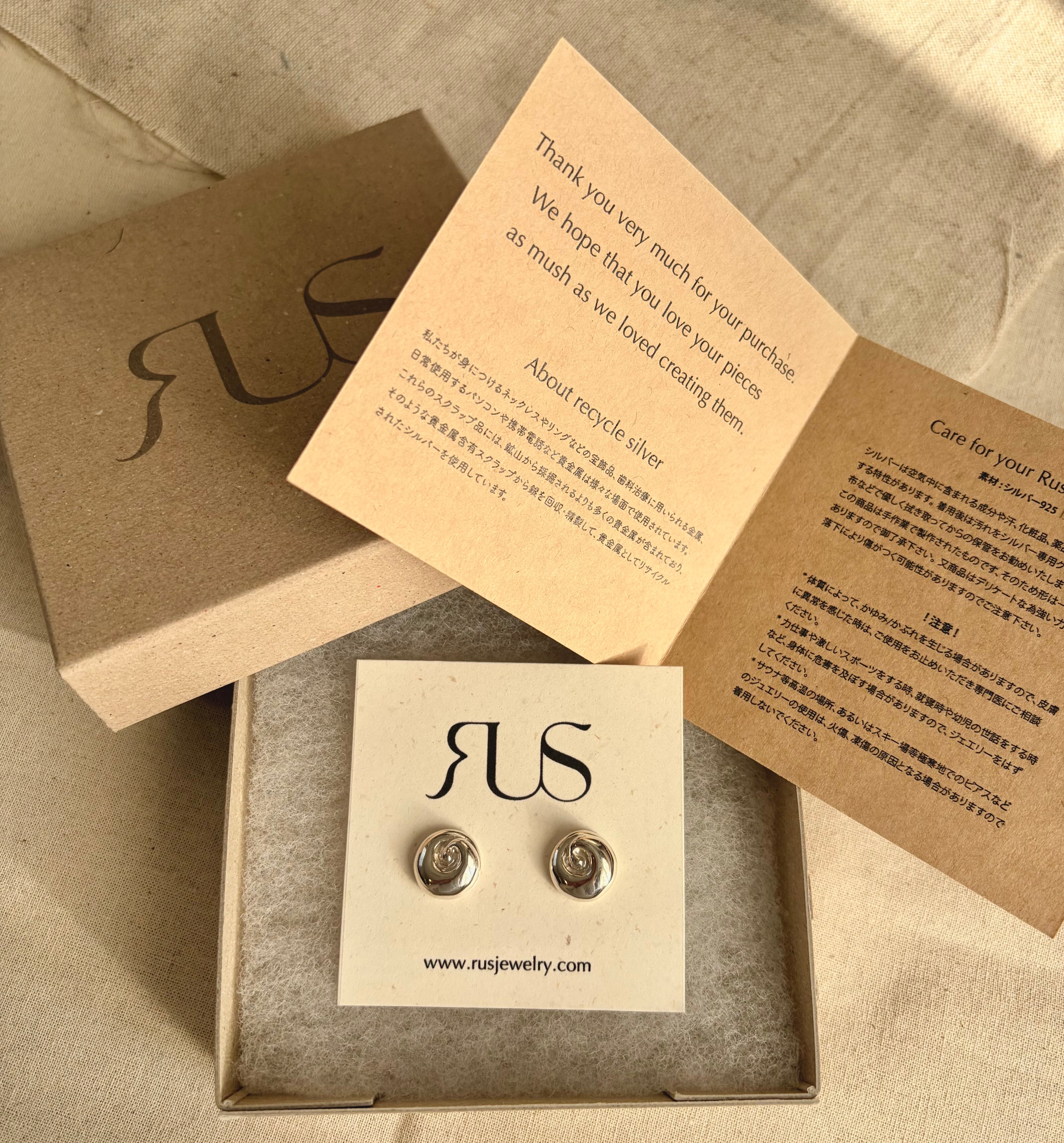 *ボックス+風呂敷:オリジナルのジュエリーボックスに商品・取扱説明書を一緒に同梱し、コットン100%の生地を使い風呂敷ラッピングにてお届けします。Thank youカード、納品書は封筒にて同封致します。(*ドライフラワーもつきます)